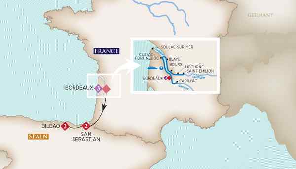 Once in Blaye, you can join a tour of its 17thcentury citadel, a UNESCO World Heritage Site. For a more active excursion, take a bike ride around Blaye along a former railway. Later in the day, you can choose to bike from Blaye through the idyllic French countryside to Bourg. Or, in the ancient village of Bourg, take a walking tour and visit the Carriage Museum, which houses a wonderful collection of horse-drawn vehicles, and the World War II Petrol Cistern. Towards the evening, experience the hospitality of this charming medieval village with an exclusive wine festival. Meet the local wine growers and taste the fruits of their labors as well as enjoy live French music and dancing. (B,L,D)
