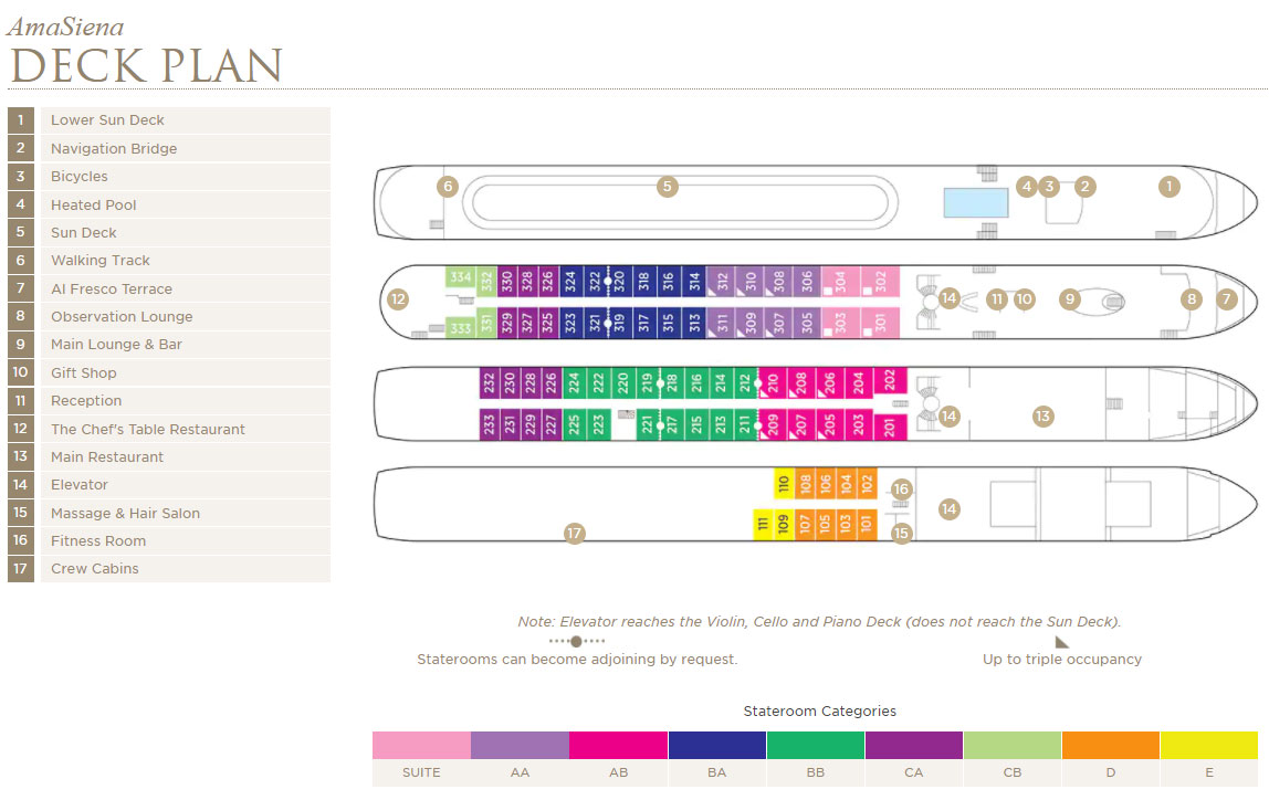 | CATEGORY | DECK | STATEROOM | CRUISE ONLY | EARLY BOOKING CRUISE ONLY | SWITZERLAND 4-NIGHT PRE-CRUISE TOUR ADD | AMSTERDAM 2-NIGHT POST-CRUISE TOUR ADD |